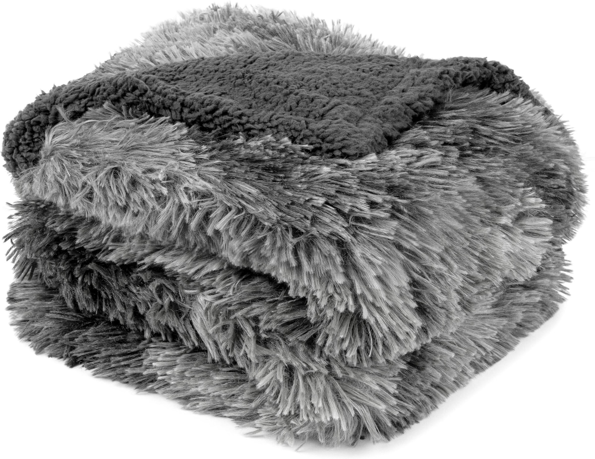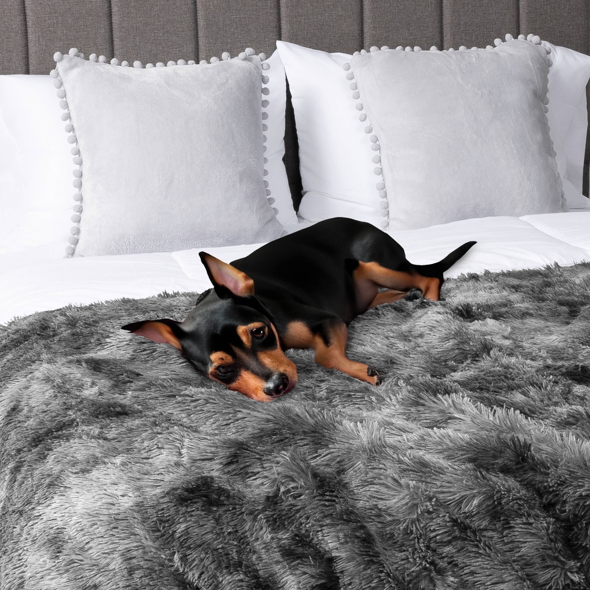 PetAmi Furry Faux Fur Waterproof Cat & Dog Blanket, Tie-Dye Grey, Medium