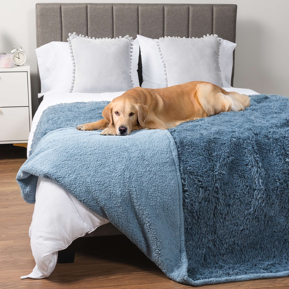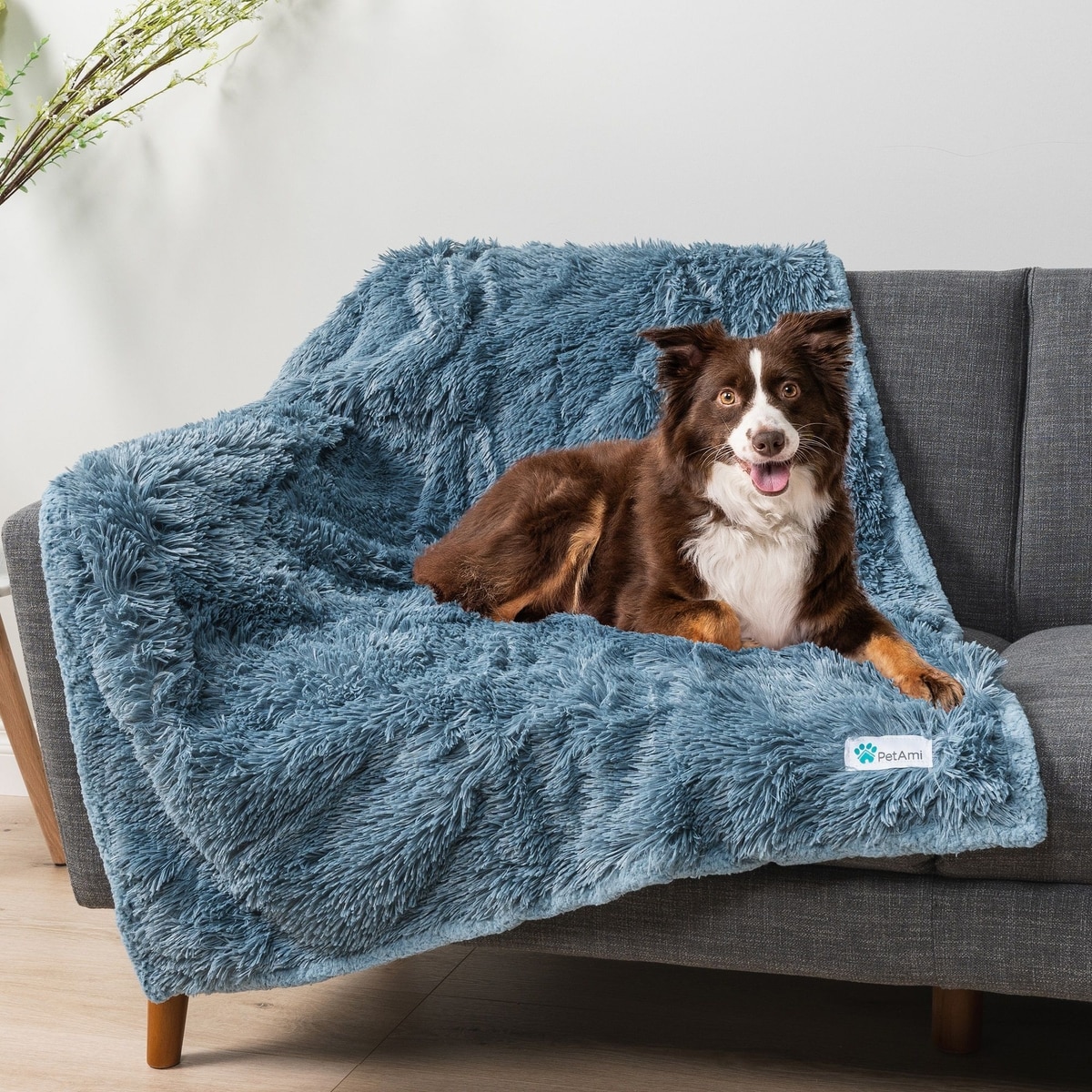 PetAmi Furry Faux Fur Waterproof Cat & Dog Blanket, Dusty Blue, X-Large