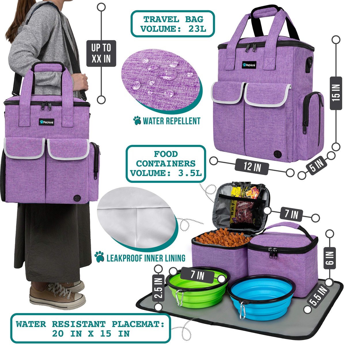 PetAmi Pet Supplies Organizer Tote Dog & Cat Travel Bag, Heather Purple