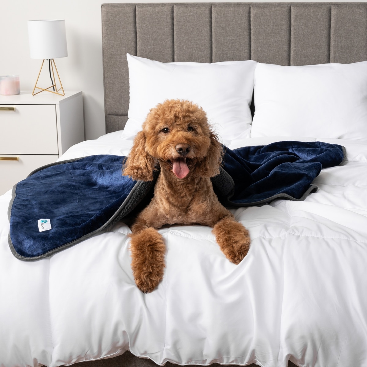 PetAmi Sherpa Fleece Waterproof Cat & Dog Blanket, Navy/Gray, Medium