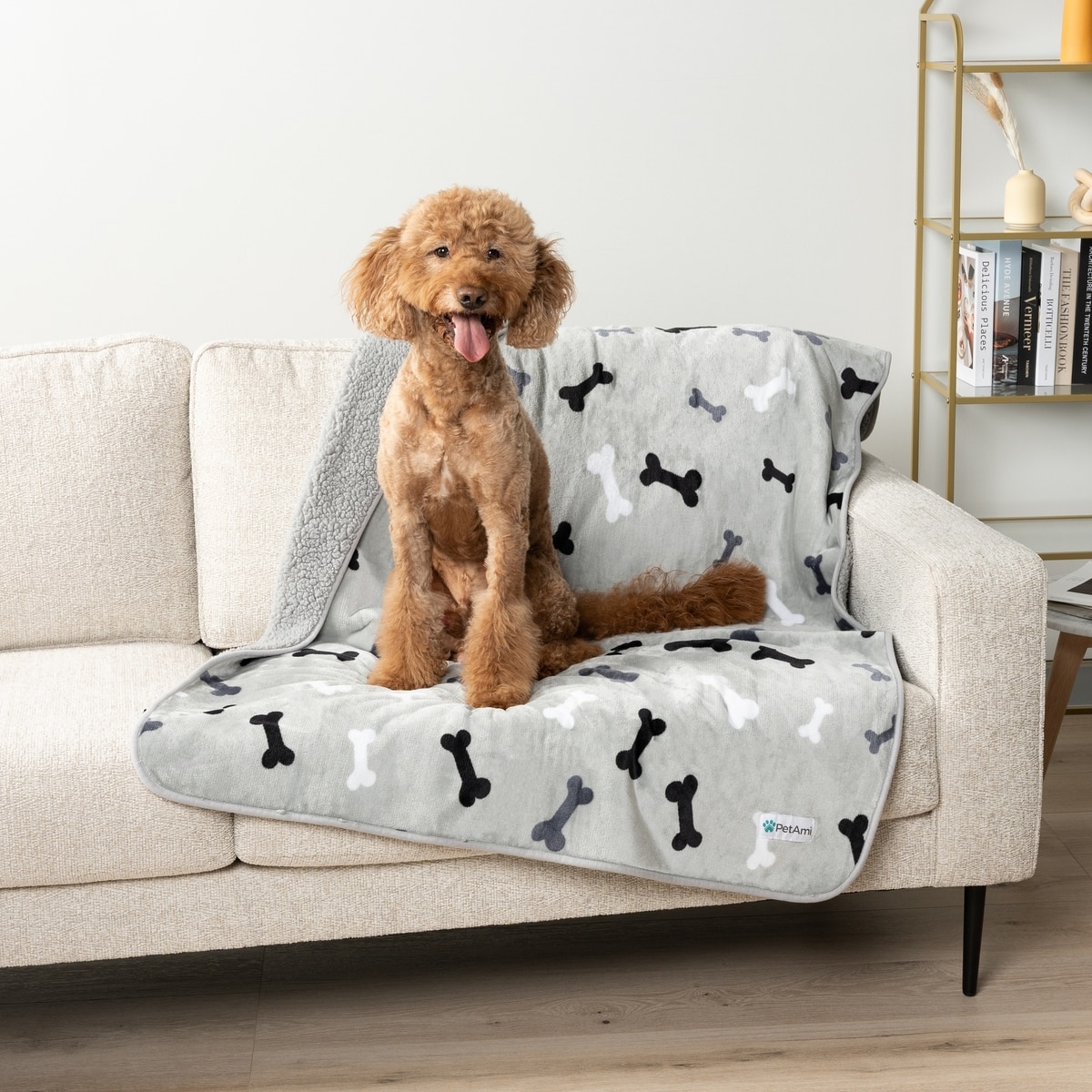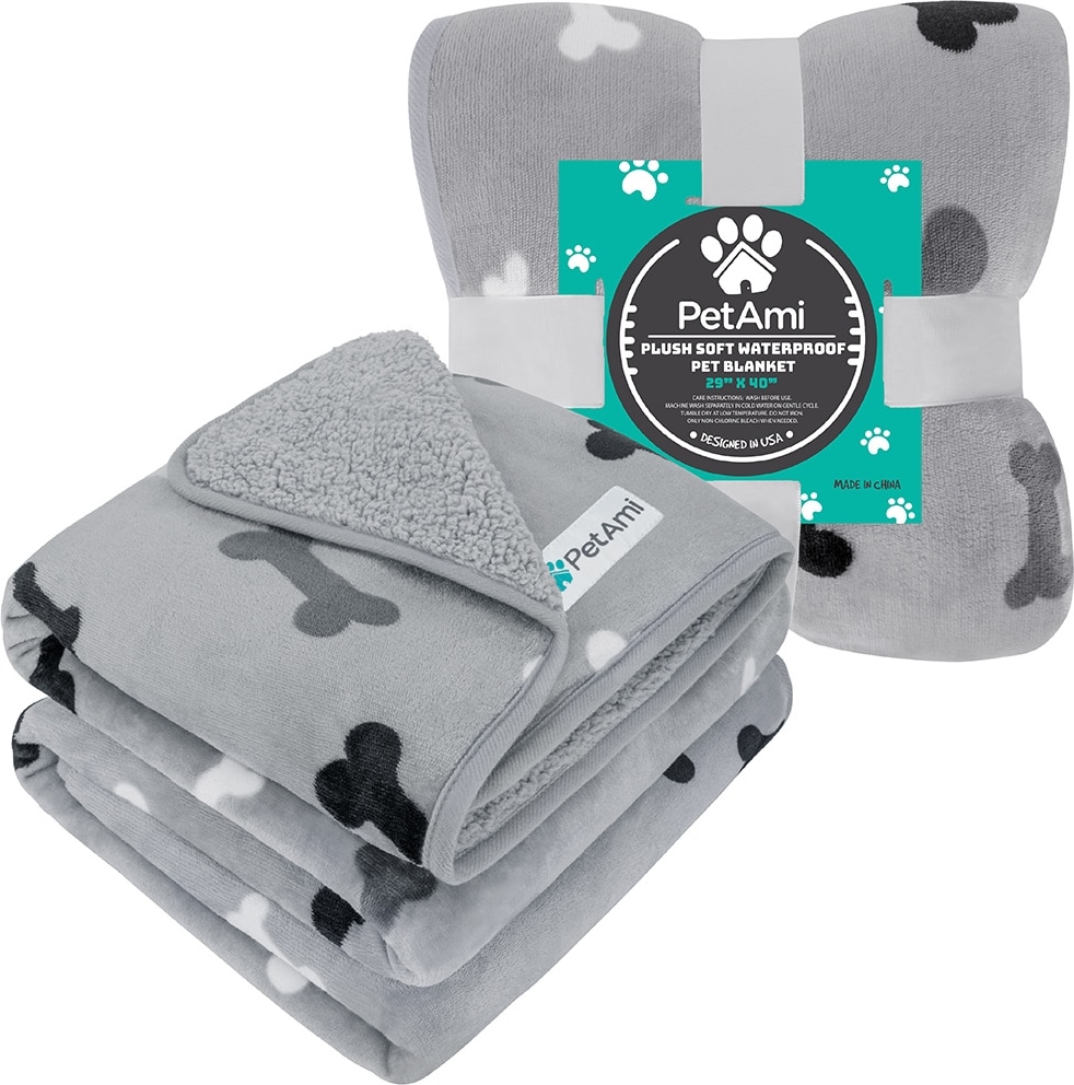 PetAmi Sherpa Fleece Waterproof Cat & Dog Blanket, Bone Gray, Large