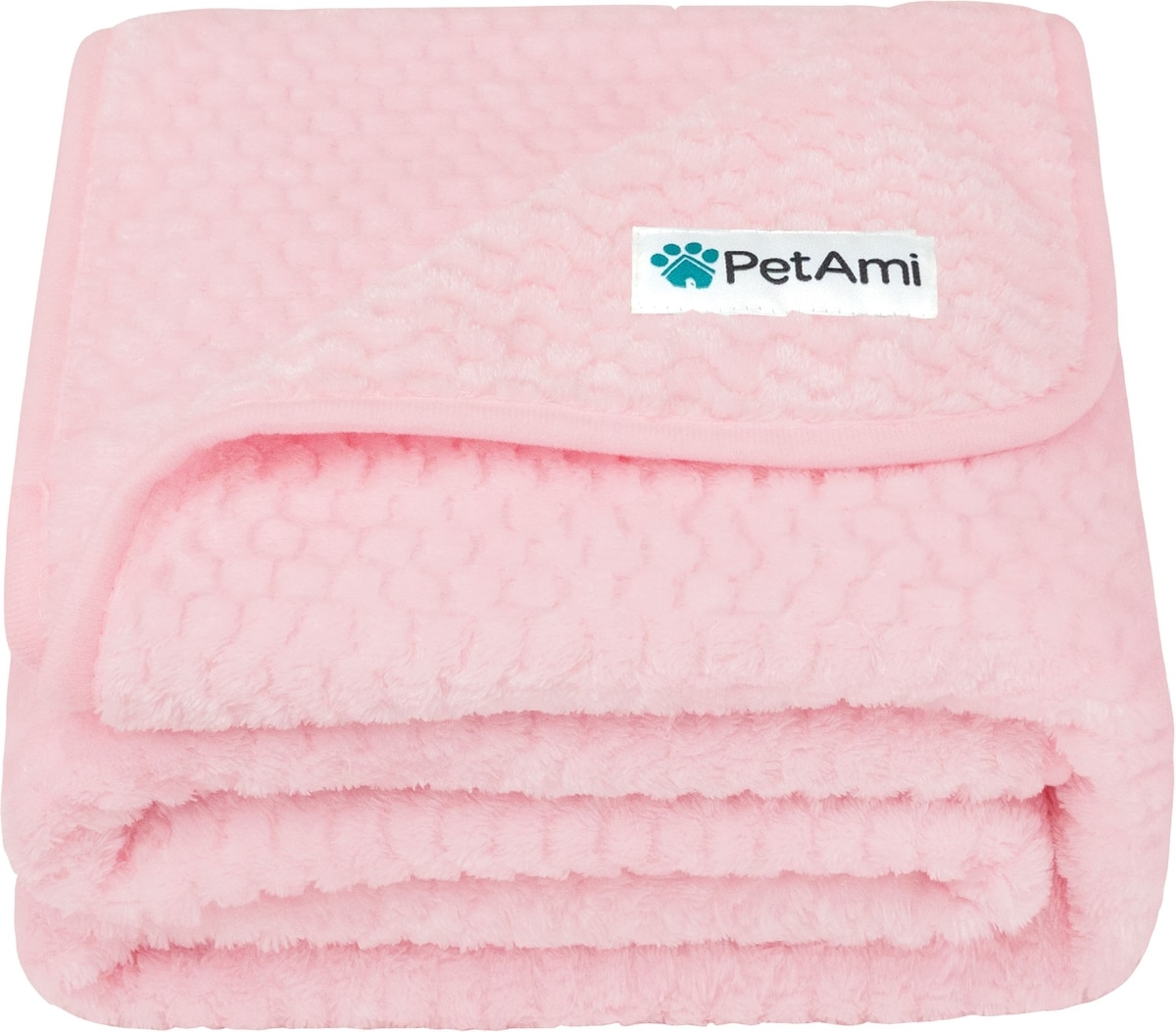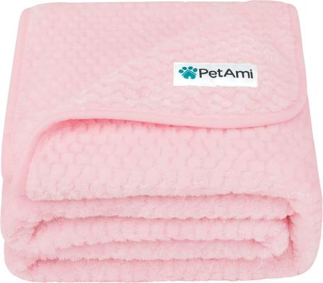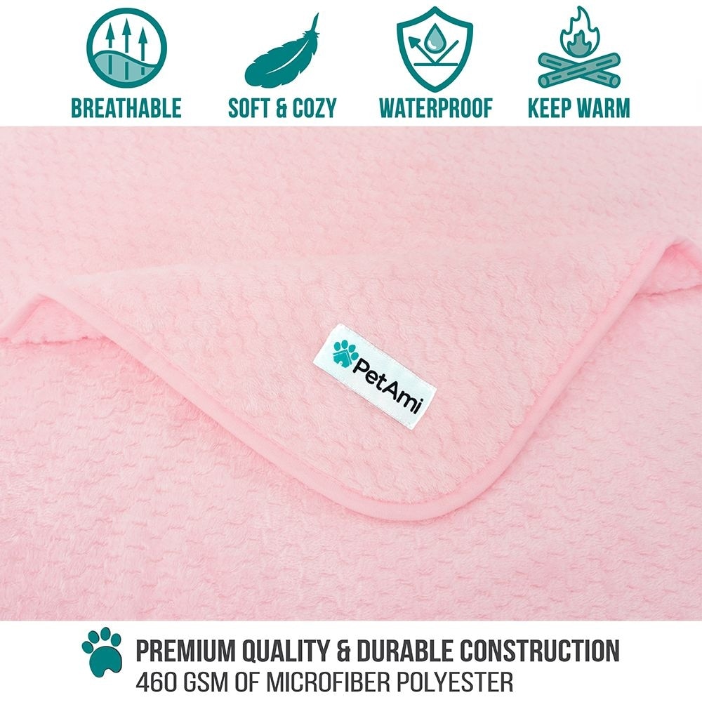 PetAmi Sherpa Fleece Waterproof Waffle Cat & Dog Blanket, Pink, Large