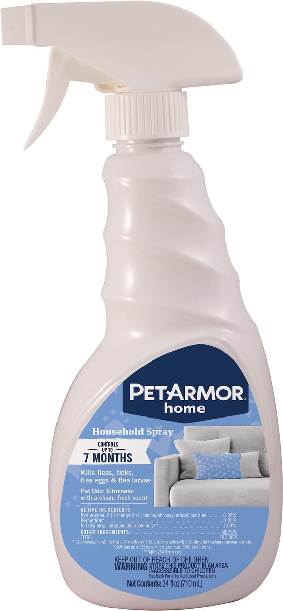 - Pyriproxyfen in PetArmor Home Household Spray will prevent flea eggs from hatching into biting adults for up to 210 days.