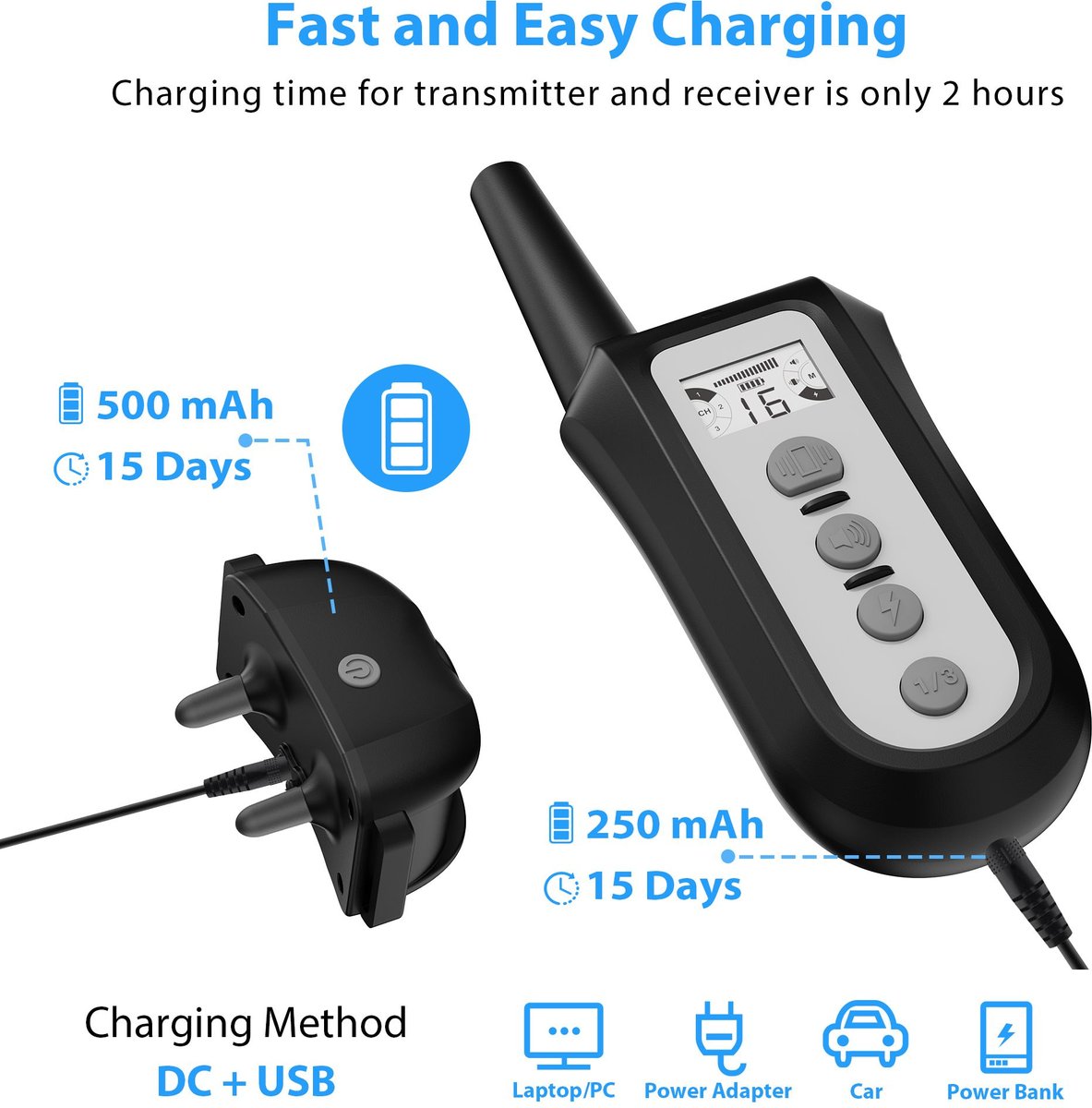 Stay connected anytime, anywhere. With ranges from 1,000 to 3,300 feet depending on the model, the remotes ensure reliable communication even in wide outdoor spaces. Plus, one remote can pair with up to three collars, making it easy to train multiple dogs.
