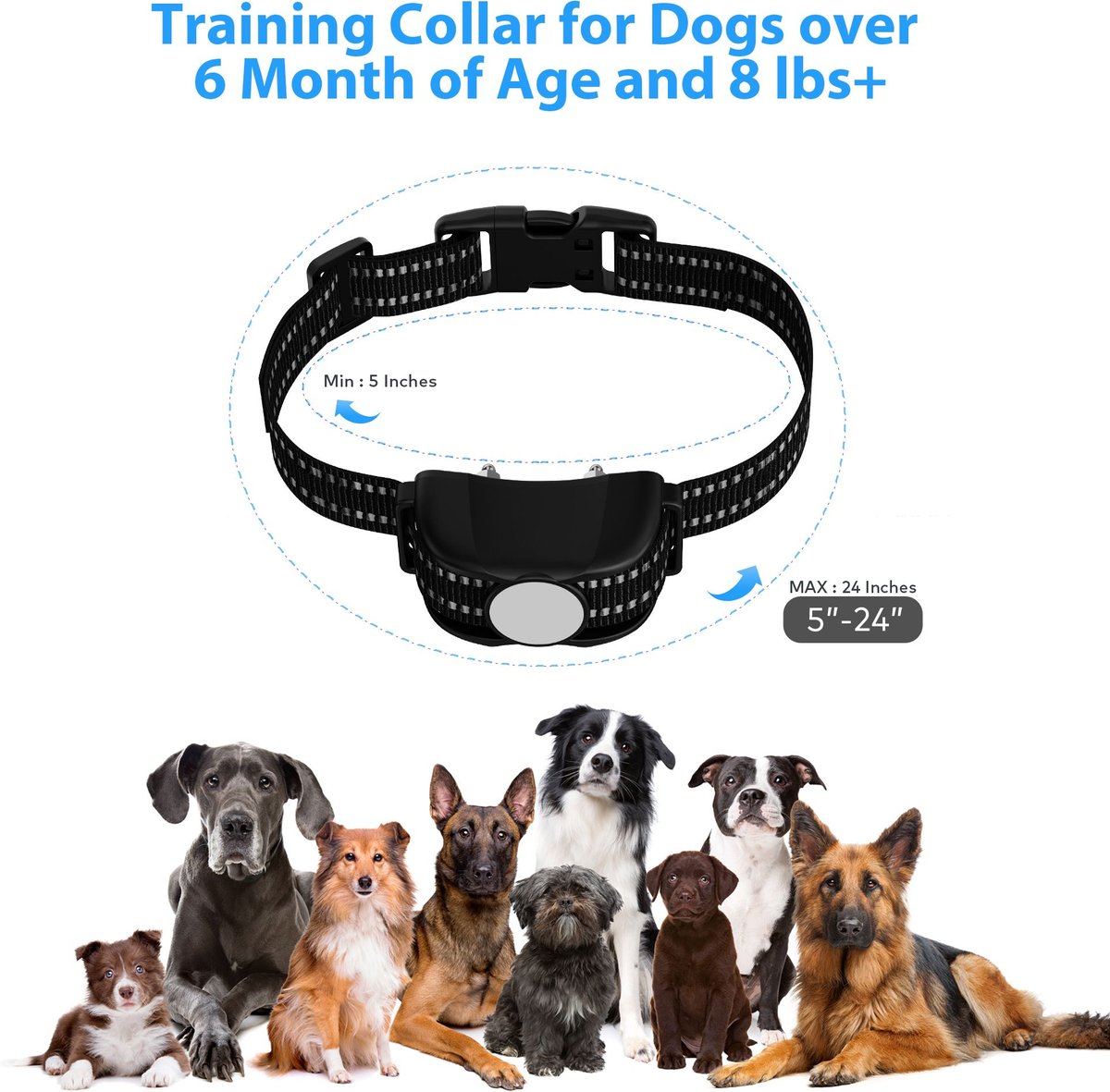 - To discourage unwanted behavior, choose between loud beeps, eight levels of vibration and 16 levels of mild static shock.