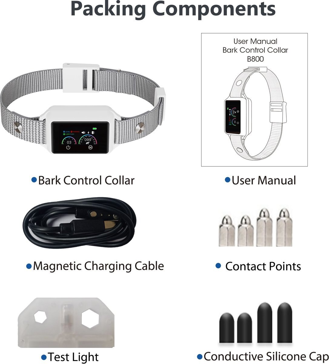 Petdiary Smart Touch Screen Rechargeable Dog Bark Collar, White