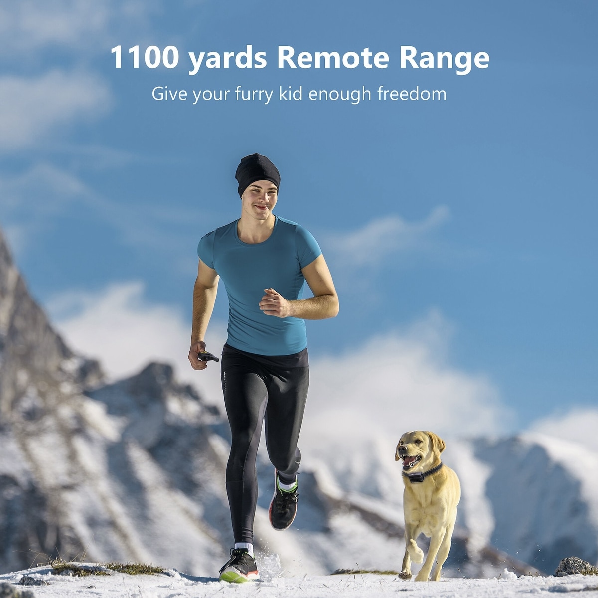 • Remote control works over a long distance, which means you can reach your pup when he’s up to 3,300-ft away in an open area.