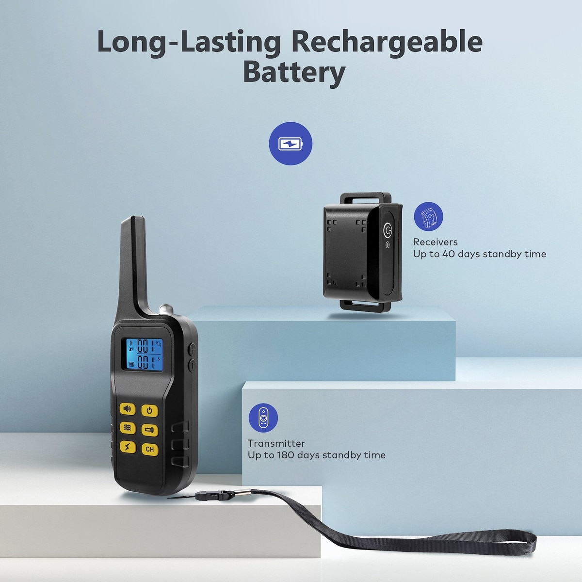 With ranges up to 3,000 feet, Petdiary e-collars ensure consistent training in open fields, backyards, or parks--perfect for recall training, off-leash freedom, and outdoor adventures. You can train up to three dogs at once with just one remote, too.