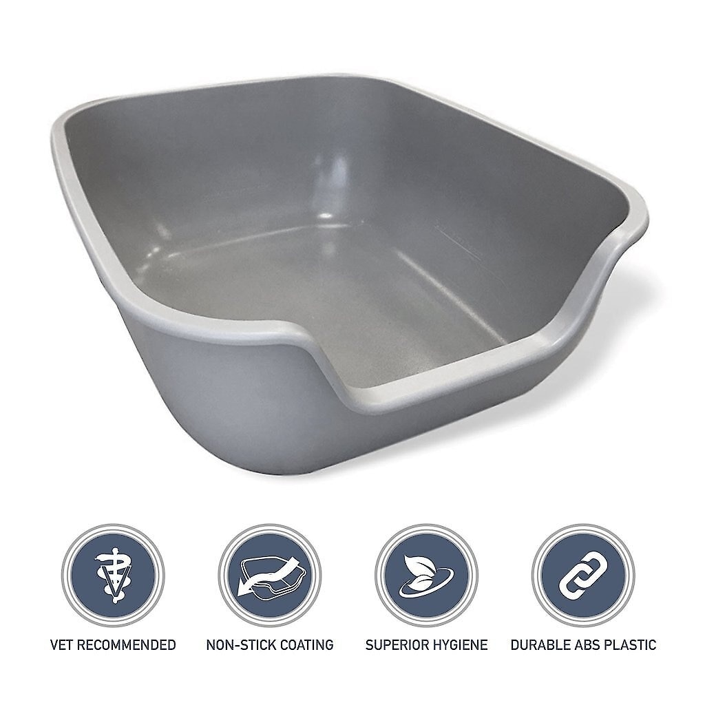 - Thoughtfully designed litter box is made from rigid and durable non-porous ABS plastic for superior hygiene and simple maintenance.