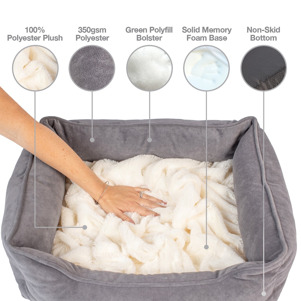 - Soft, loose blanket top with recycled, supportive bolsters are designed for dogs who suffer from anxiety.