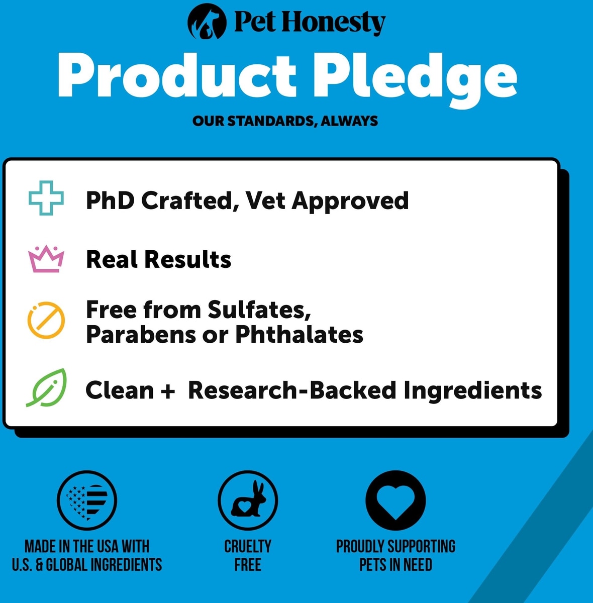 Thoughtfully Crafted With Care You want your pet to look and feel their best. That's why Pet Honesty uses clean ingredients—no sulfates, parabens, phthalates, alcohol, or artificial colors. Because what they put inside helps your pet look healthiest on the outside.