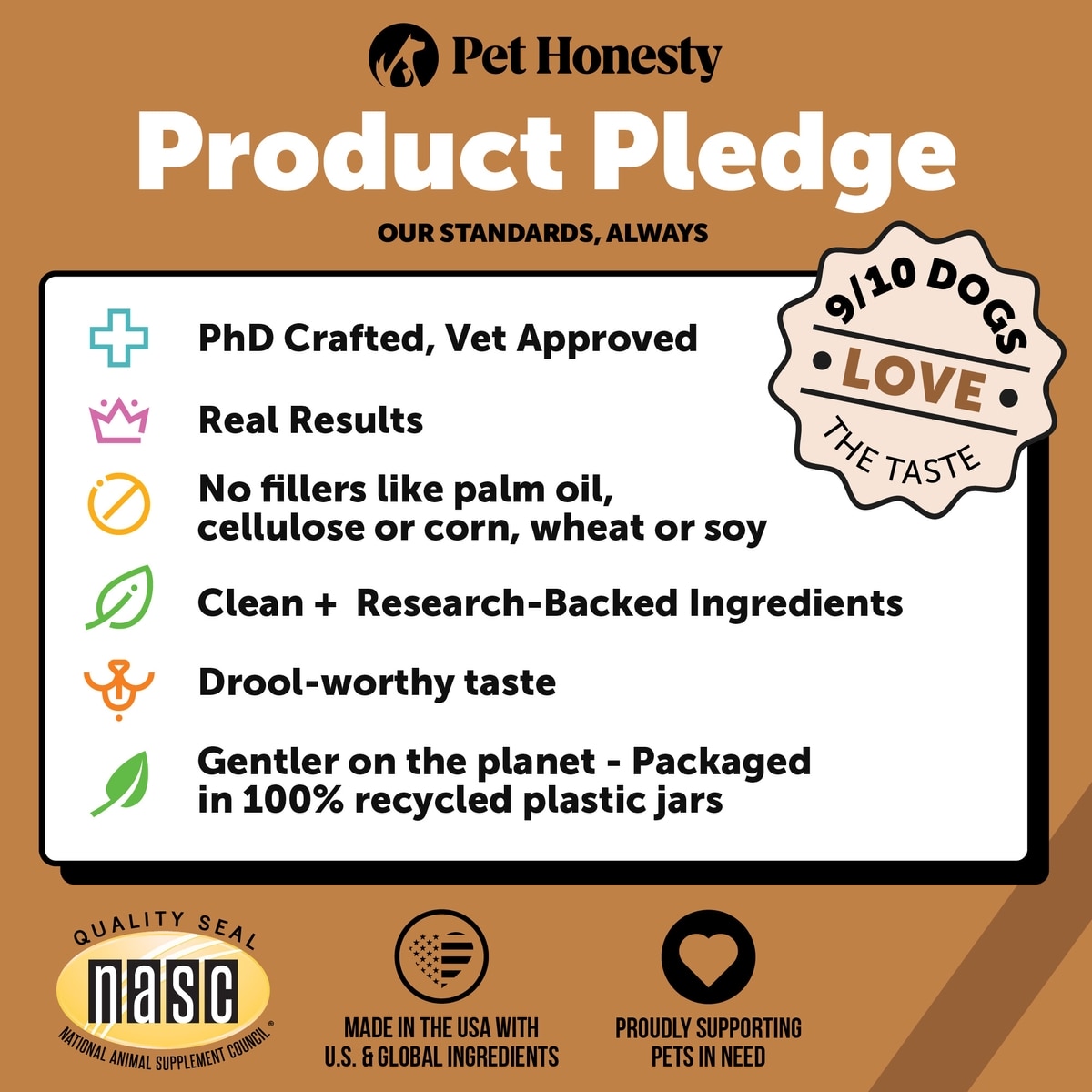 Thoughtfully Crafted With Care Pet Honesty supplements are formulated by their in-house PhD animal nutritionist. Built on their exclusive natural Pure Vitality Blend, they provide added digestive and immune benefits in every tasty chew.