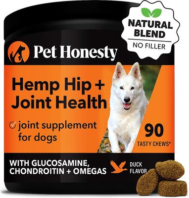Pet Honesty Hemp Hip + Joint Health Duck Soft Chews Glucosamine, Chondroitin Supplement for Dogs, 180 count