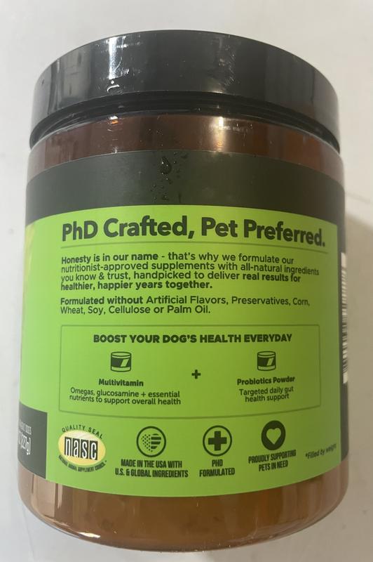 Thoughtfully Crafted With Care Pet Honesty supplements are formulated by their in-house PhD animal nutritionist. Built on their exclusive natural Pure Vitality Blend, they provide added digestive and immune benefits in every tasty chew.