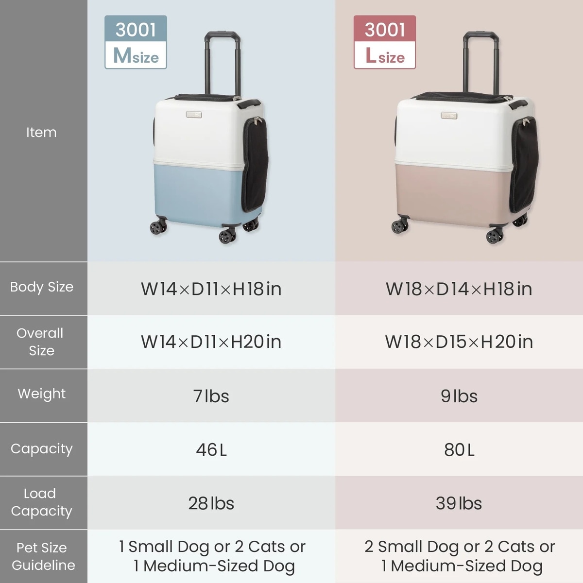 The body is made from 100% polycarbonate—a material also used in suitcases—offering durability, lightness, and excellent stability. At just 9.5 lbs (L size) and 7.9 lbs (M size), it’s easy to lift and carry wherever you need to go.