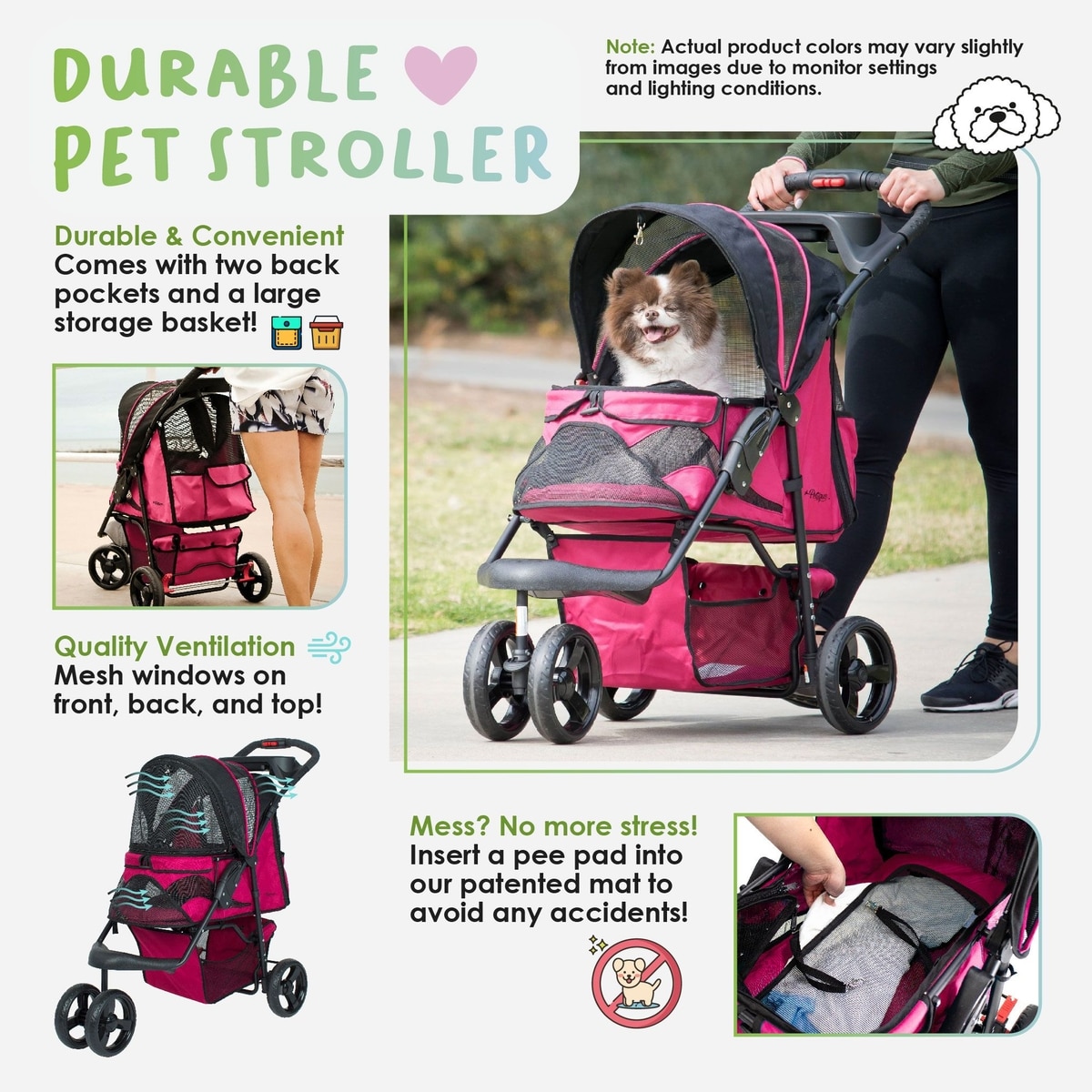 Petique Dog & Cat Stroller, Razzberry