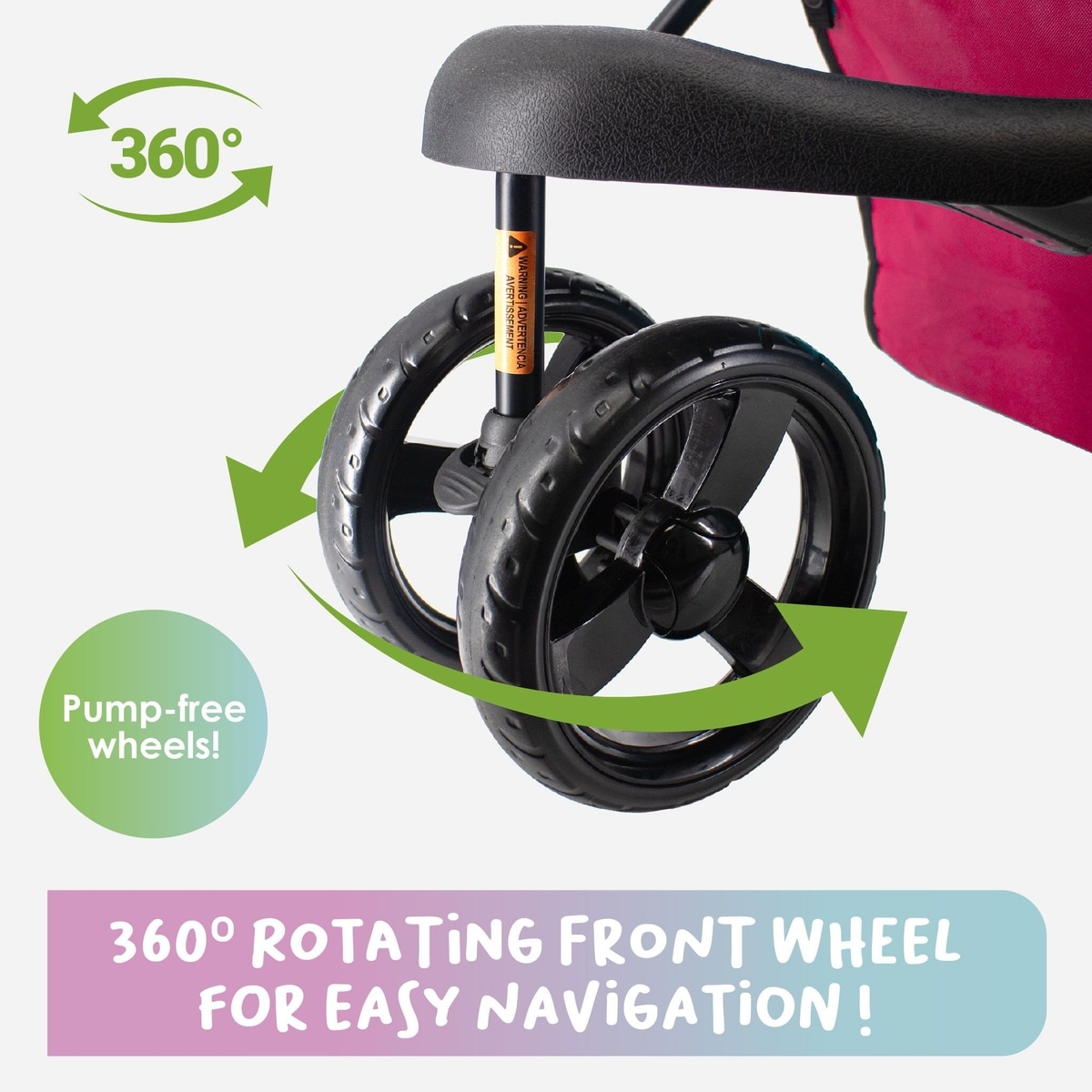 - Front wheels swivel and lock, when needed.