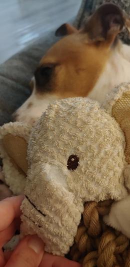 Bentley loved this toy. Sadly he was able to pull off the ears and tail, but still loves the toy. I stitched up the open space so we’re not losing stuffing.