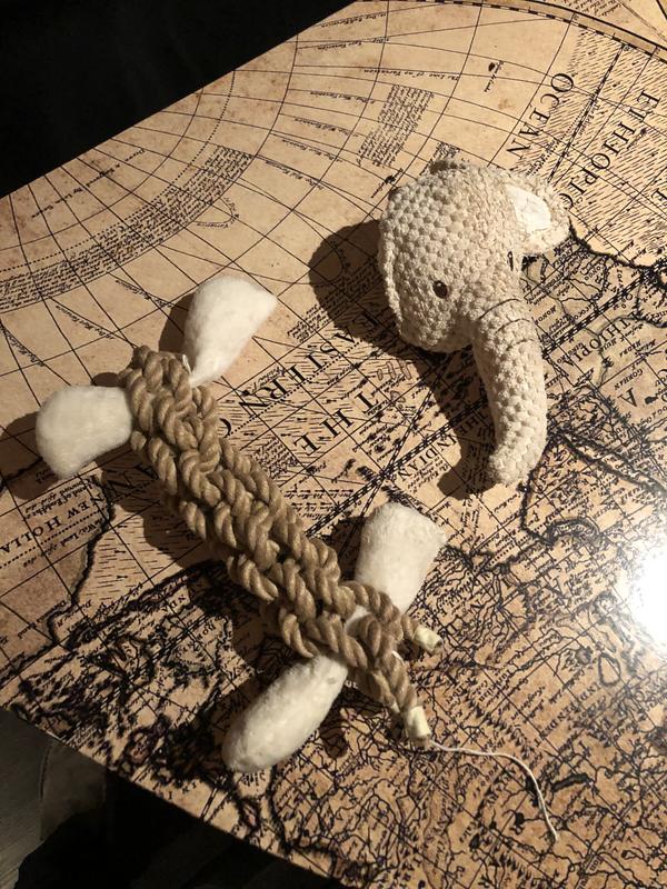 My dog (who loves to rip the face off every toy he gets) loves this toy! The hemp rope is extremely durable and has barely frayed, and the fabric hasn’t torn at all. We are so happy with this elephant!