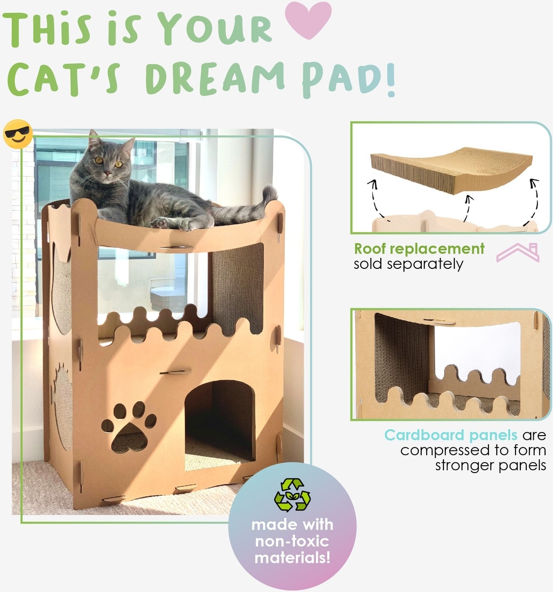 It's hard to find this shape of a cardboard house with multiple levels, not too wide/deep, and the cardboard surfaces for the cats to scratch while inside or outside