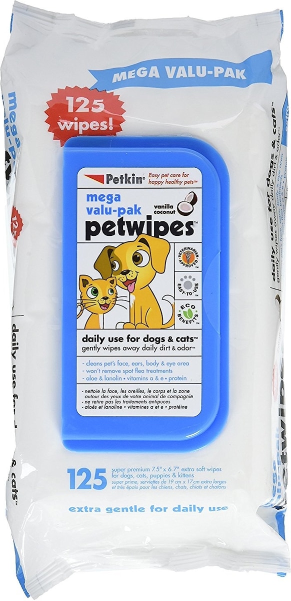 Petkin Petwipes Vanilla & Coconut Valu-Pak Dog & Cat Wipes, 125 count