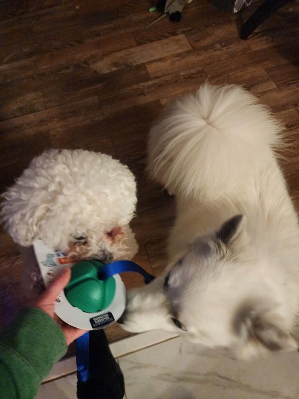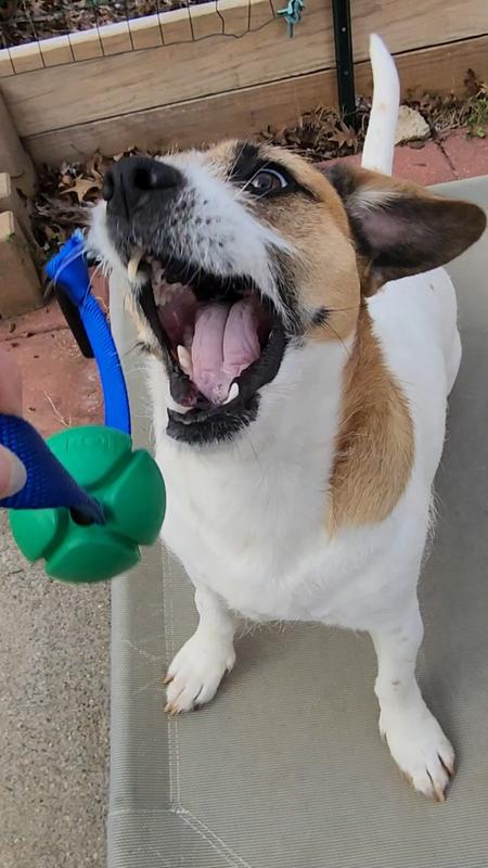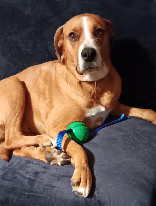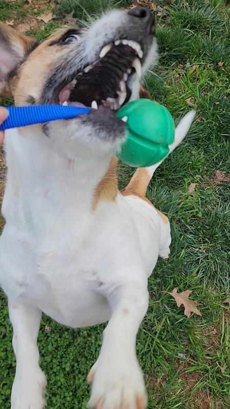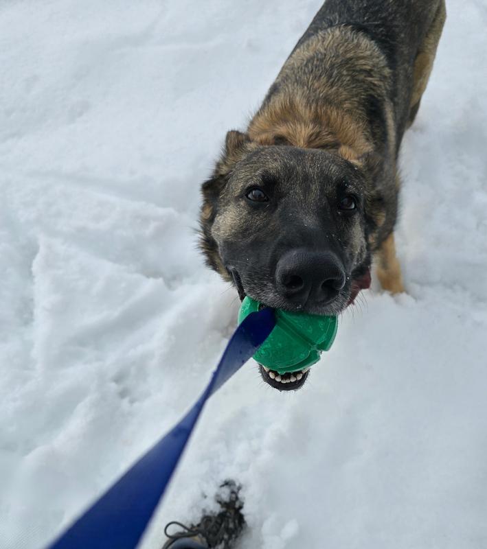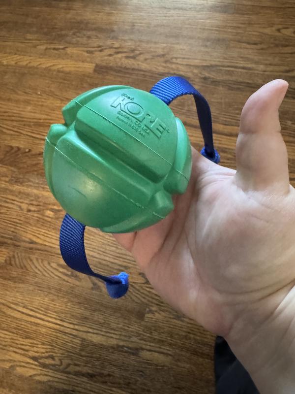 Okay, hear me out - putting a rope on a ball doesn't seem like a huge enhancement. But it is. Not only can I get a good bit of distance chucking this toy thanks to the rope, but Siggi had an easier time digging it out of deep snow. The ball is surprisingly solid. The weight makes it fly further while also being able to stand up to being chewed, chomped, and chucked against every surface possible. We put this toy through its paces, and it stood up against both fetch and tug-of-war. The bright colors made it stand out, which was very much appreciated when playing "reverse fetch" and having to find it in the snow. Definitely glad we've added this to our toy box!