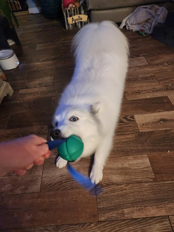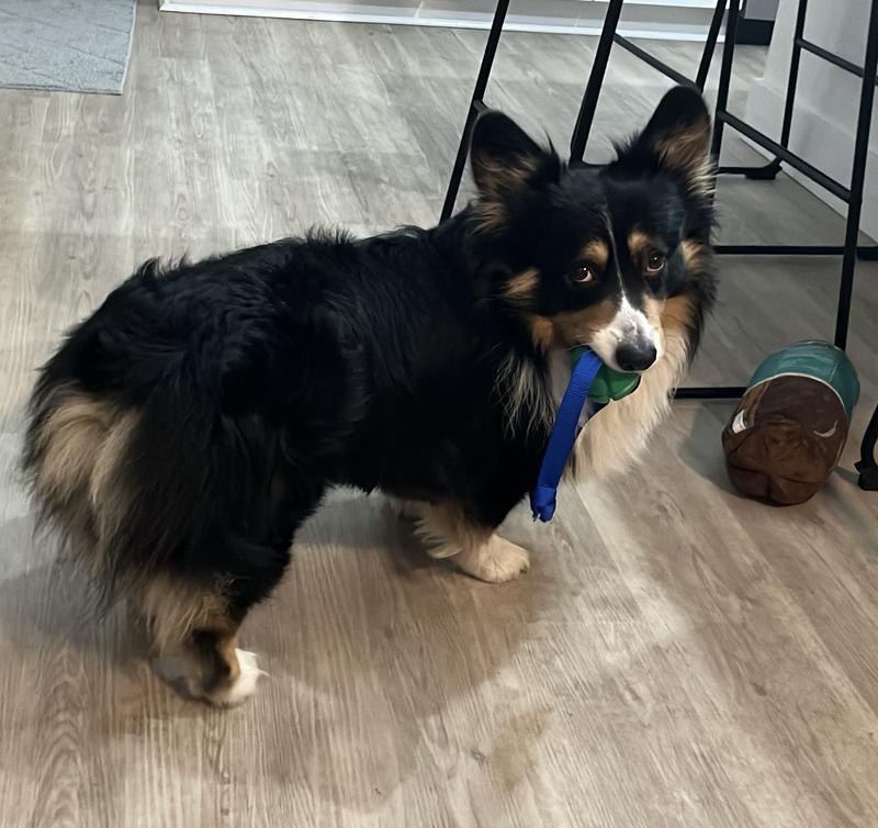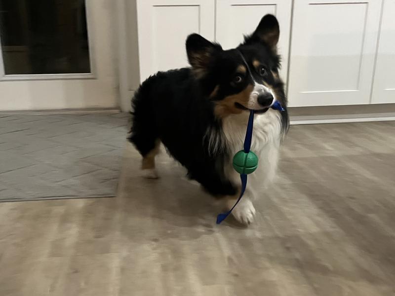 My corgi, Oliver, LOVES to fetch. He did not immediately chase after the PetKORE FloTek Tough Tug Dog Toy, but after some encouragement he finally determined it was an acceptable toy. It is not his favorite toy by far, and I’m a little worried about the thin blue strap, but at least he is willing to play with it and have some variety added to his toy bin.