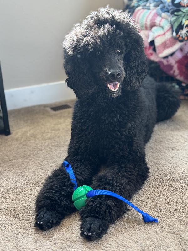 Our standard poodle is LOVING this PetKore FloTek Tough Tug Dog Toy! She is ball obsessed, so I was excited to give this toy a try. I was nervous she may not take