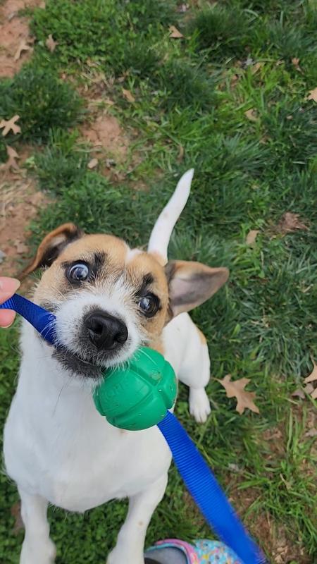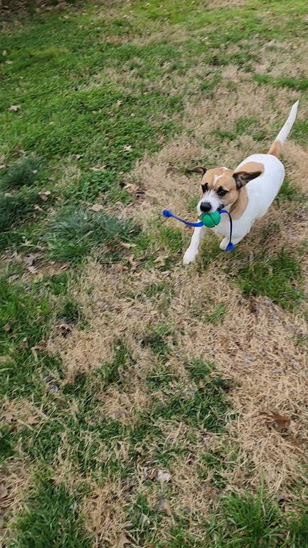 Okay, hear me out - putting a rope on a ball doesn't seem like a huge enhancement. But it is. Not only can I get a good bit of distance chucking this toy thanks