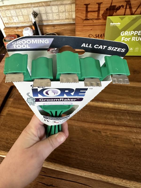 The PetKORE GroomRaker Cat Deshedding Tool is an excellent grooming tool for reducing loose fur and preventing matting. The small size is perfect for precise grooming, and the design is comfortable to hold. It gently removes excess hair without pulling, and my cats seem to enjoy the process. A must-have for keeping shedding under control!