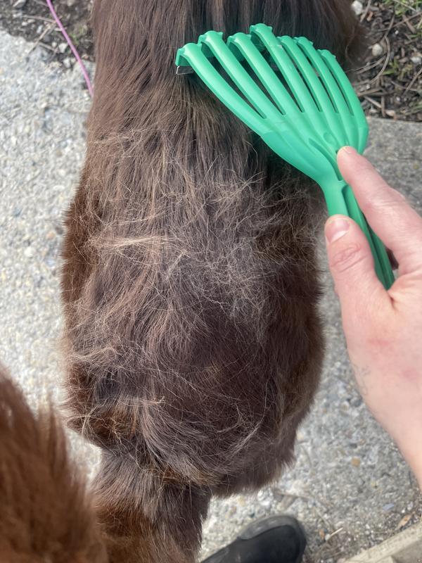 I love the rake for my Bernese MT dog and also use it on my Mini Horse! They both loved the feeling of the rake and lots of fur was easi;y removed! I let my daughter