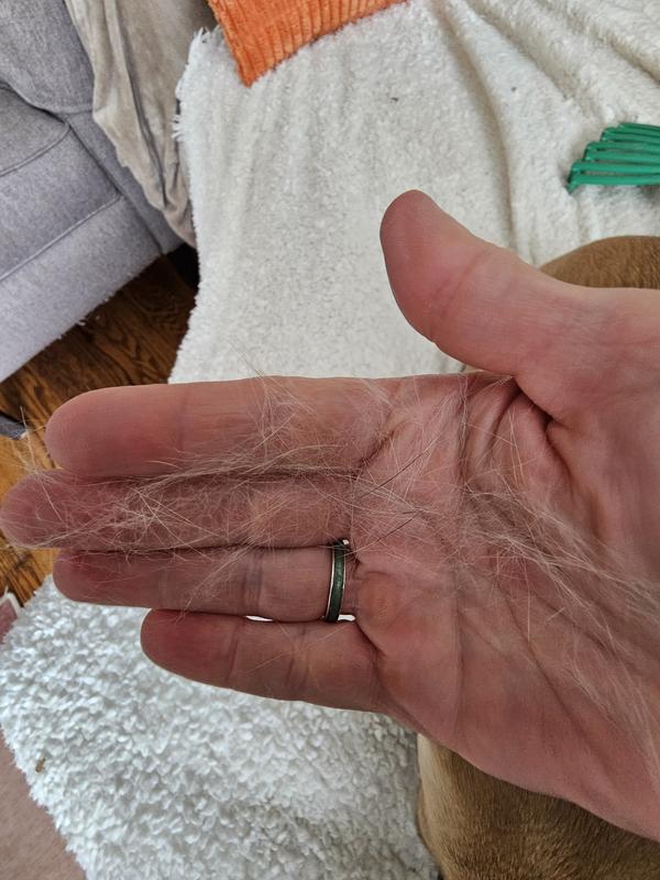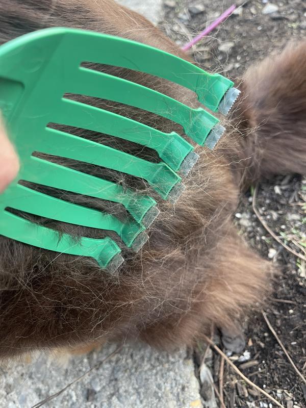 To say I'm thrilled with this grooming rake is an understatement! I have several dogs with long coats or double coats and they shed. A lot. This rake pulls the shed hair clumps off the dogs with ease.