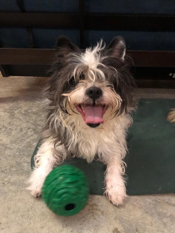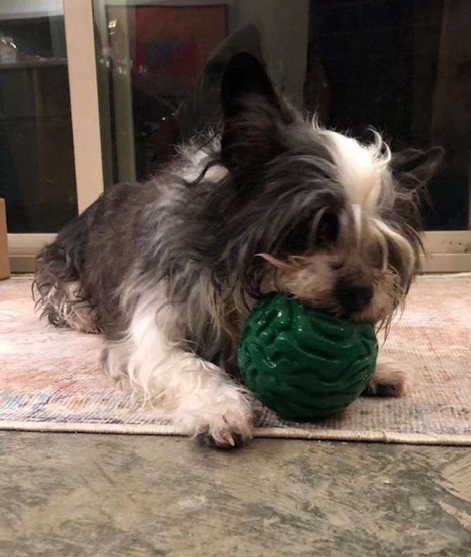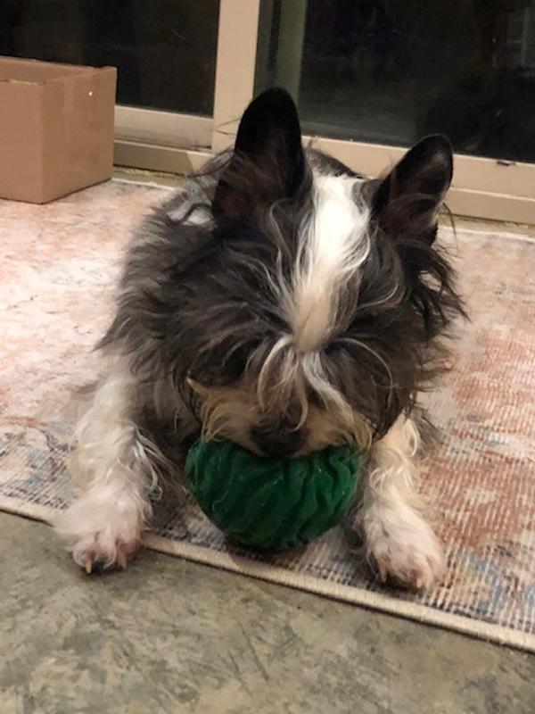 My 17-pound Shih Tzu/Boston Terrier mix is an absolute beast when it comes to balls. She will destroy a squeaker within minutes and typically splits balls open on the first day. In all the years I've had her, I've only had three balls she didn't pulverize and this is one of them. This ball is as much of a beast as Poppy is. Balls that last save me money because they don't have to be continually replaced, something I've done a lot of over the years. It's her new best friend.