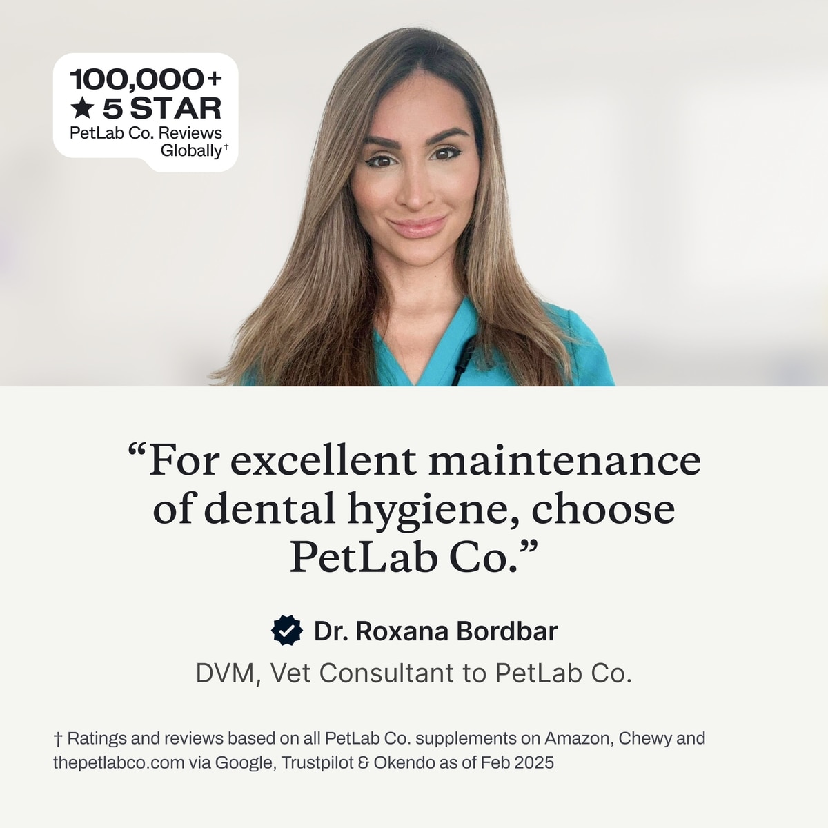 "PetLab Co. Dental Formula Dog Dental Water Additive, 8-oz bottle—Help keep your dog’s teeth and gums in check without the hassle or discomfort with PetLab Co. Dental Formula Dog Water Additive. This mouthwash is designed for everyday use and is so easy to use—simply add it to your canine companion’s water each day, following the feeding guidelines for optimum results. Your dog won’t even notice it’s there! Spend less time with toothbrush struggles and more time with fresh breath and cuddles.