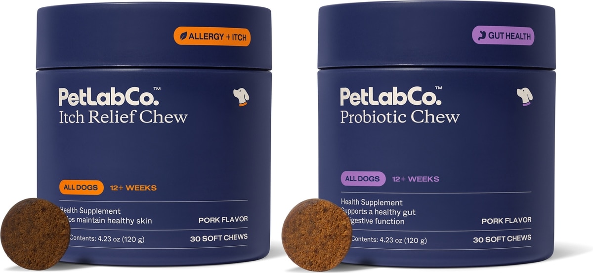 PetLab Co. Itch Relief Pork Flavor Dog Supplement, 30 count—If your furry friend experiences itching, paw biting and self-chewing, then try Petlab Co. Itch Relief Pork Flavor Dog Supplement. These issues are often a response to changes in the environment or to your pet’s diet. These wag-worthy, pork-flavored chews may have a number of benefits, including supporting skin and coat health with omega-3 and -6 fatty acids.