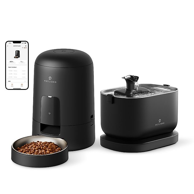 Petlibro Automatic Cat Feeder & Wireless Cat Fountain Set, Black