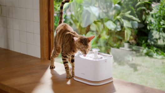 DS2 smart wireless fountain offers up to 30 days of cordless freedom. The app tracks your pet's water intake, provides trend alerts, and sends refill and cleaning reminders. Featuring 4-layer filtration and a pet-sensing mode, it ensures a clean and quiet drinking experience.