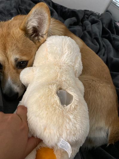 This duck is very cute but my dog absolutely loves it! It has lasted quite a while unfortunately the duck lost his foot I only wish I could get another one.