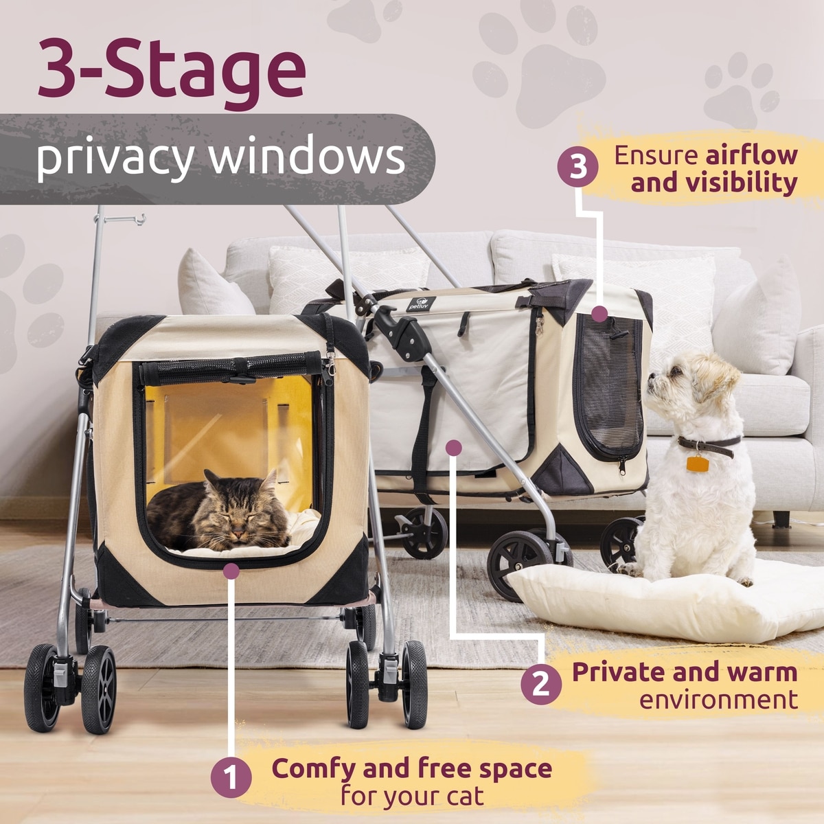 PetLuv Premium Pet Stroller, Soft-Sided Carrier & Travel Crate, Tan, Large