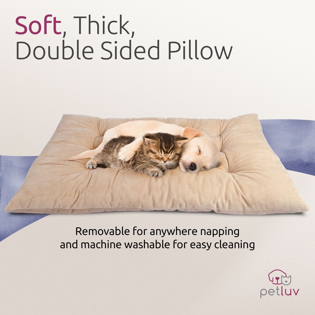 PetLuv makes travel easy and luxurious with details both you and your pet will notice: a plush washable pillow, 4 access doors, breathable mesh flaps, and privacy windows, plus locking zippers, seat belt loops, a storage pocket, and fold-flat design.