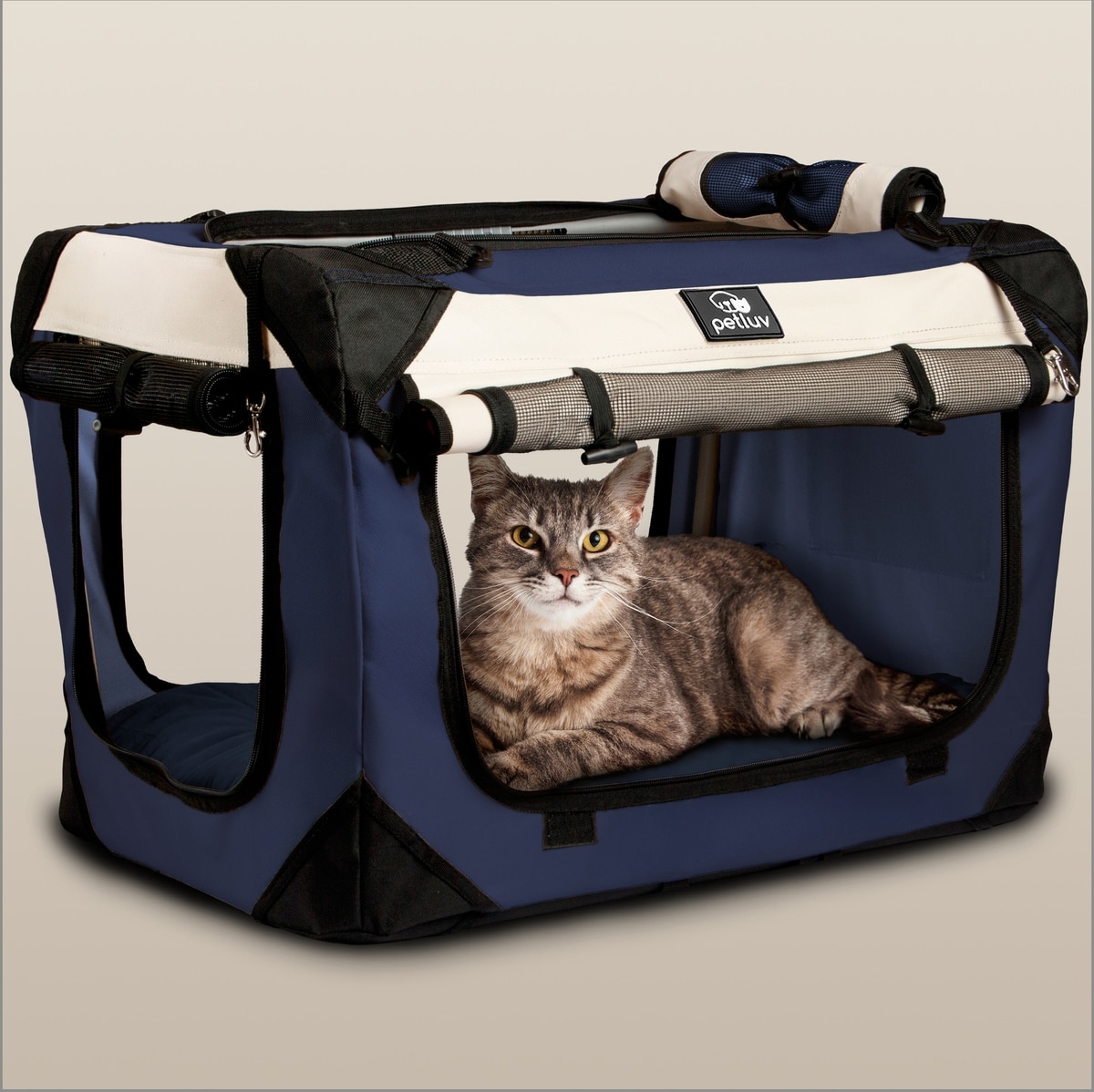 PetLuv makes travel easy and luxurious with details both you and your pet will notice: a plush washable pillow, 4 access doors, breathable mesh flaps, and privacy windows, plus locking zippers, seat belt loops, a storage pocket, and fold-flat design.