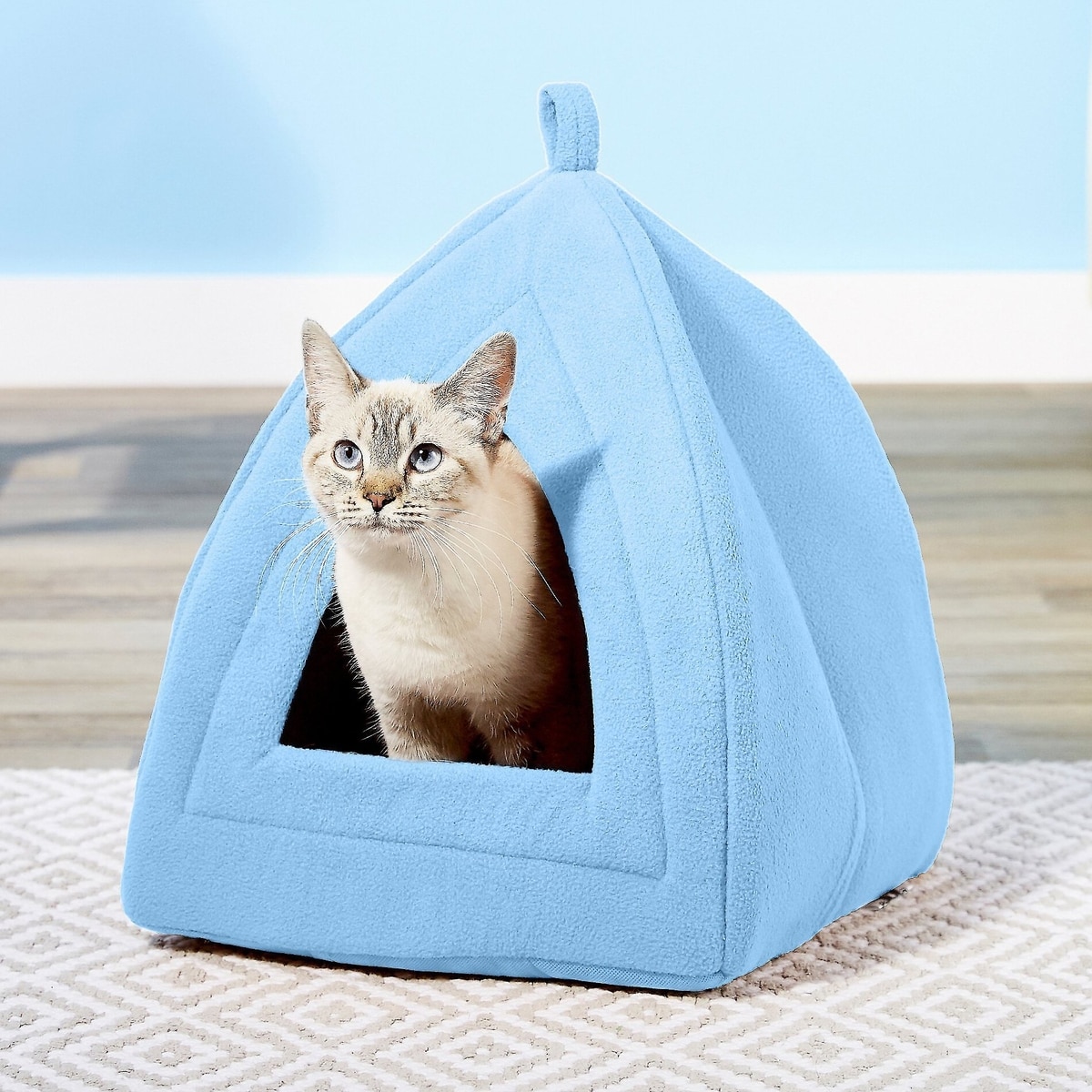 Petmaker Cozy Kitty Tent Igloo Plush Cat Bed, Blue