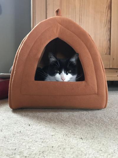 My cat loves this bed, we call it his “tent”! It’s a cozy spot for him to take a nap.