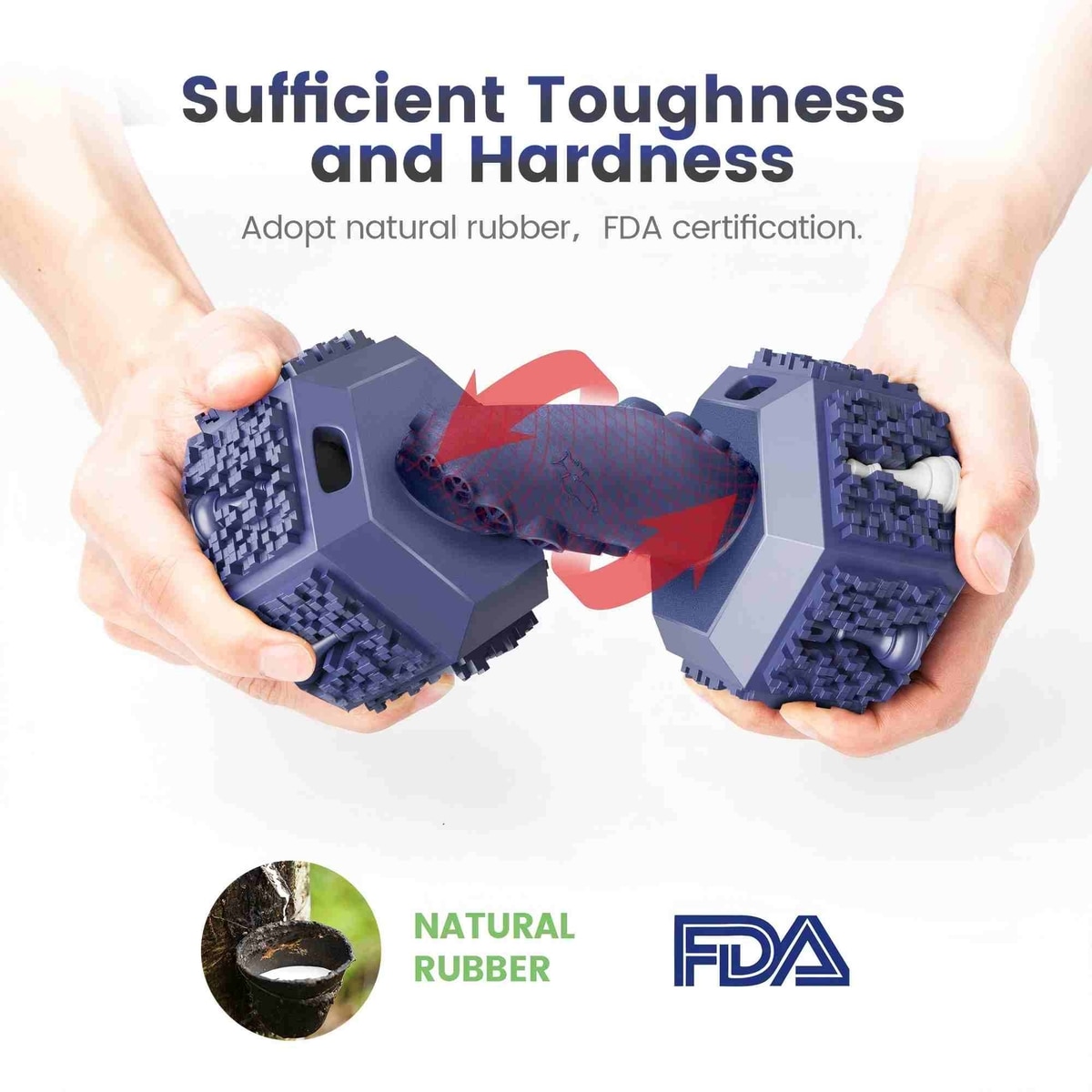 This toy is made with 100% natural rubber and uses special formulas and processes to increase its bite resistance and lifespan.