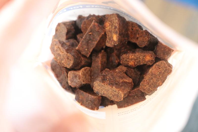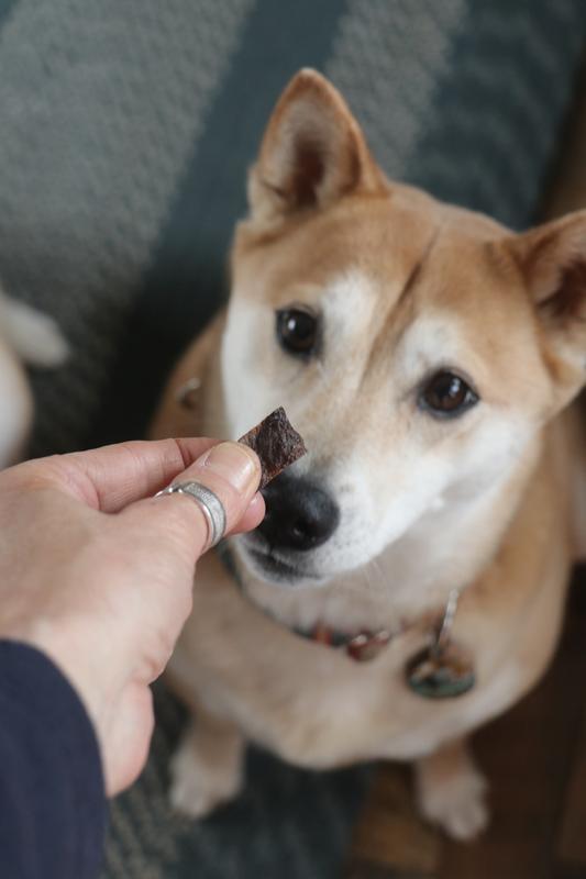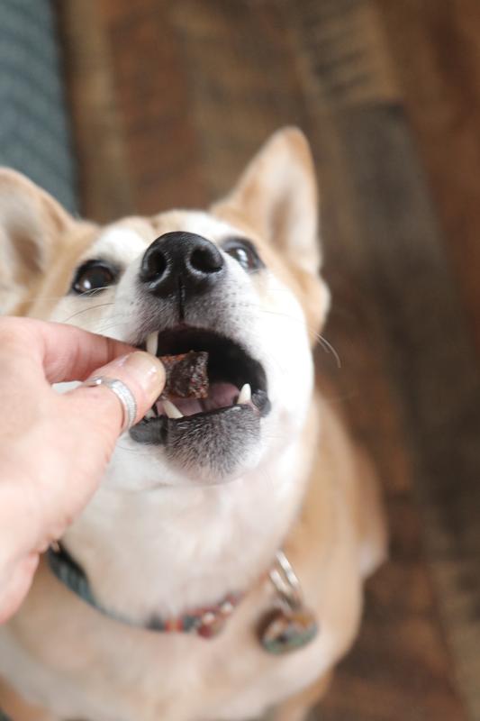 If dogs could talk, they’d definitely recommend these treats! Both of my picky girls loved them and I love the fact that I know the entire ingredients list and it’s all things I’d eat myself. The treats have a soft jerky-like consistency and are easily chewed up by both pups (one small dog and one medium sized). They are also easily broken in half which I sometimes do just to limit over “treating” the girls.