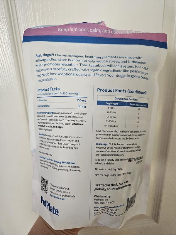 PetPlate Human Grade Chill Out Calming Soft Chews Dog Supplement, 28 count