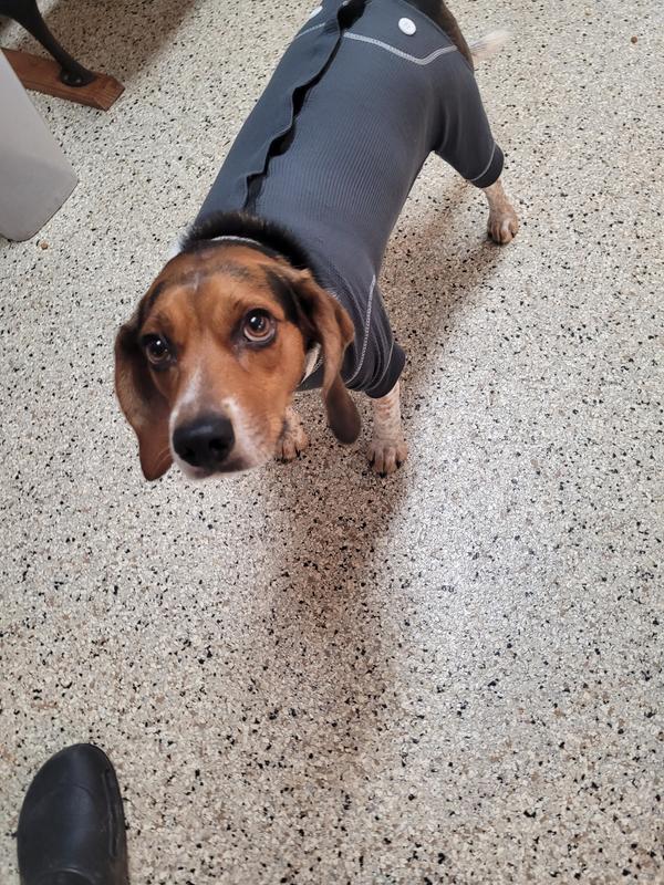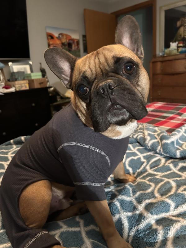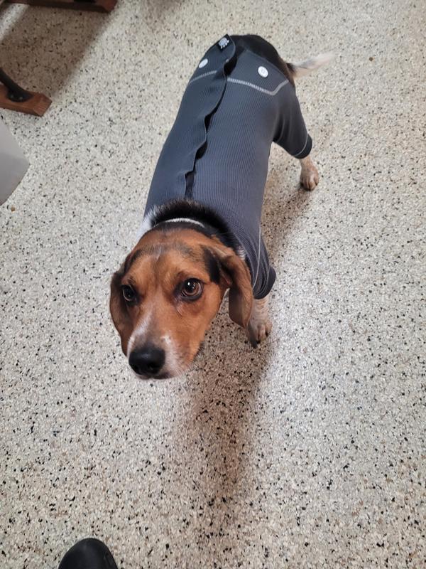 - Provide a protective layer for sensitive areas such as hot spots, scratching, and biting with clothing for pups.