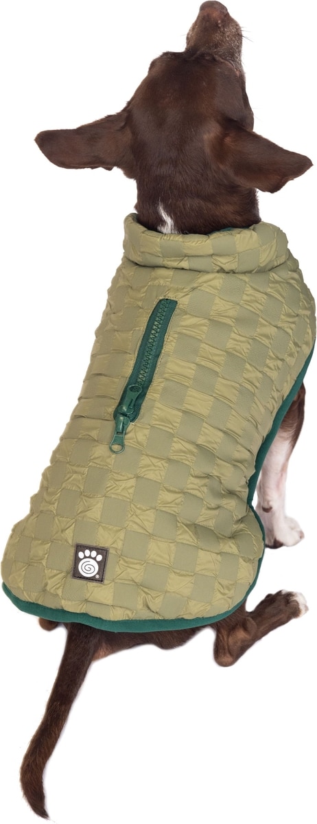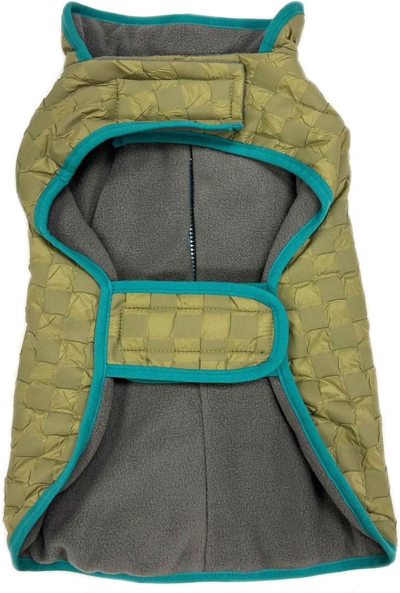 PetRageous Designs Luna Peak Buffalo Check Textured Dog Parka, Green/Teal, Small
