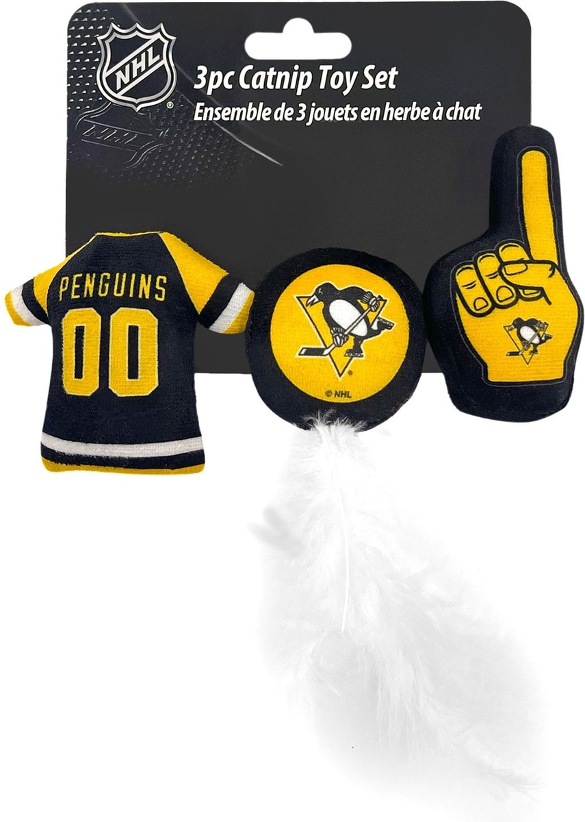 Pets First NHL Plush Cat Toys with Catnip, 3 count, Pittsburgh Penguins