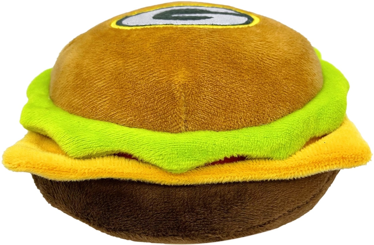 Pets First Hamburger Squeaky Dog Chew Toy, Green Bay Packers